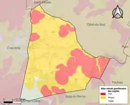 Le retrait-gonflement des sols argileux est susceptible d'engendrer des dommages importants aux bâtiments en cas d’alternance de périodes de sécheresse et de pluie. 93,9 % de la superficie communale est en aléa moyen ou fort (84,7 % au niveau départemental et 48,5 % au niveau national). Sur les 170 bâtiments dénombrés sur la commune en 2019, 170 sont en aléa moyen ou fort, soit 100 %, à comparer aux 86 % au niveau départemental et 54 % au niveau national. Une cartographie de l'exposition du territoire national au retrait gonflement des sols argileux est disponible sur le site du BRGM[23],[24].