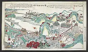 Le 1er juin 1894, des rumeurs parviennent aux rebelles Donghaks selon lesquelles les Chinois et les Japonais sont sur le point d'envoyer des troupes. Les rebelles acceptent donc un cessez-le-feu avec le gouvernement de Joseon pour éliminer tout motif d'intervention étrangère[1]. Le 2 juin, le cabinet japonais décide d'envoyer des troupes en Corée si la Chine fait de même. En mai, les Chinois prennent des mesures pour préparer la mobilisation de leurs forces dans les provinces du Zhili, du Shandong, et de Mandchourie[2]. Cependant, ces actions sont davantage planifiées comme une manifestation armée visant à renforcer la position chinoise en Corée que comme une préparation à la guerre contre le Japon[2]. Le 3 juin, le roi Gojong, sur recommandation du clan Min et sur insistance de Yuan Shikai, demande l'aide du gouvernement chinois pour réprimer la rébellion Donghak. Bien qu'elle ne soit pas aussi grave qu'elle ne le paraissait initialement et que les forces chinoises ne sont donc pas nécessaires, le gouvernement Qing décide d'envoyer 2 500 hommes sous le commandement du général Ye Zhichao (en) au port d'Asan, à environ 70 km de Séoul. Les troupes destinées à la Corée naviguent à bord de trois paquebots britanniques affrétés par le gouvernement chinois et arrivent à Asan le 9 juin. Le 25 juin, 400 soldats supplémentaires débarquent. Par conséquent, Ye Zhichao dispose d'environ 2 800 à 2 900 soldats sous ses ordres à Asan à la fin du mois de juin[2][3].