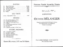 Lors de l'exposition du mois de , à la bibliothèque Saint-Sulpice, le critique J.-René de Cotret, du journal Le Canada, écrit : « L'effort accompli par M. Octave Bélanger mérite d'être largement encouragé. Tout d'abord parce qu'il dénote chez l'artiste une ardeur au travail pour laquelle il faut le louer et ensuite parce que son exposition a une incontestable valeur. Nous engageons les amateurs à la visiter et à y prolonger leur séjour afin de bien l'étudier. Elle en vaut la peine »[14].