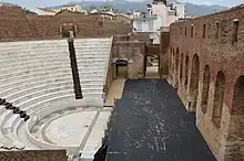 Aux abords immédiats du monument ont été mis au jour des sarcophages en marbre de l'époque romaine ainsi que des vestiges d'habitation et de mosaïques antérieurs à l'odéon[28],[29]. À une centaine de mètres à l'ouest de l'odéon se trouvent les ruines du stade-théâtre (el).