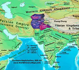 - La même carte en 565 fait apparaître l'Oddiyana en 30: Voir en ligne.
