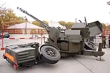 - 16 Type 90[8] avec 6 radars Skyguard FC[9] et radars Super-Fledermaus, utilisable pour le missile Roland[10]. Hors d'usage en 2002, un certain nombre de Type 90 ont été remis en service par la 31e brigade d'artillerie avec des ressources locales[11]