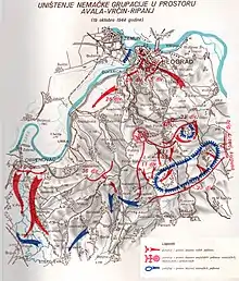 Le , après le succès des contre-offensives soviétiques en Roumanie et en Bulgarie, le 1er Groupe d'Armée de partisans yougoslaves, le 3e front ukrainien (y compris la 2e armée bulgare nouvellement formée après la déclaration de guerre de la Bulgarie à l'Allemagne) et des éléments du 2e Front ukrainien attaquent les positions du Groupe d'armées E (Korpsgruppe « Schneckenburger » et « Stern »), renforcé par des Tchetniks et par la Garde nationale serbe, positionnés près de Belgrade. L'objectif principal était de détruire les forces de l'armée allemande dans les régions de Suva Planina et de Velika Morava afin de lancer un assaut sur Belgrade. Par ailleurs, l'offensive consistait à couper la retraite des forces allemandes d'Albanie et de Grèce, en coupant notamment le chemin de fer Salonique-Belgrade afin d'empêcher le Groupe d'Armées E de renforcer les troupes allemandes en Hongrie.