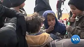 Environ 200 à 300 femmes et enfants yézidis, enlevés en 2014 par l'État islamique lors des massacres de Sinjar, sont secourus dans les derniers mois de l'offensive de Deir ez-Zor[291],[292]. Les femmes étaient utilisées comme esclaves sexuelles et certains garçons étaient enrôlés comme enfants soldats[292],[293],[294].