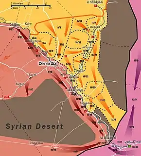 Les premiers jours de l'offensive, les Forces démocratiques syriennes progressent rapidement en attaquant par le désert, au nord de Deir ez-Zor : le 10 septembre, elles arrivent à 7 kilomètres des rives de l'Euphrate, face à la ville qui s'étend de l'autre côté du fleuve[31].