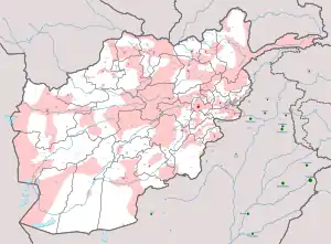 Au , les talibans contrôlent 223 districts sur les 407 du pays[23] mais aucune des trente-quatre capitales provinciales[24].
