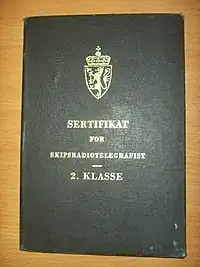 Le Brevet d'Officier de première classe était nécessaire pour assurer les fonctions de Chef Radio sur les Paquebots et les Ferries.