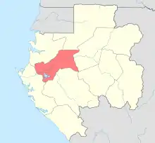 Situation du département (en jaune) dans la province du Moyen-Ogooué. | |