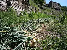 Les parcelles de cultures sont établies en terrasses. Construites depuis longtemps pour conquérir cette région montagneuse, elles étaient destinées à la culture fruitière et potagère. La relance de la culture de l'oignon permet leur entretien.