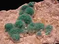 - Minéral d'origine hydrothermale, postvolcanique, elle est souvent associée aux zéolites, en remplissage des amygdales du basalte.