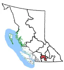 Les circonscriptions limitrophes étaient Chilliwack—Fraser Canyon, Kamloops—Thompson—Cariboo, Kelowna—Lake Country, Okanagan—Shuswap et Colombie-Britannique-Southern Interior.