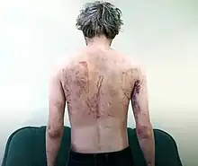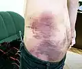 - Un manifestant montre ses contusions dues aux tortures subies à Okrestina, en 2020