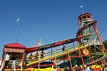 Un toboggan (le mot allemand est « Rutsche ») a été monté pour la première fois en 1907 par Franz Anton Bausch. Il fait des émules et, dès 1908, trois toboggans sont installés sur l'Oktoberfest[86]. L'attraction actuelle date de 1933[87]. Elle a subi depuis quelques modifications : le nombre de toboggans est passé de deux à un, la tour est devenue plus petite, et le toboggan restant est devenu mobile. Il a un dénivelé de 8 mètres[88].