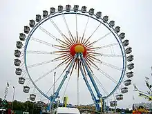 La première grande roue sur l’Oktoberfest a été installée en 1880 et faisait 12 mètres de haut. Depuis 1979, la grande roue atteint une hauteur de 50 mètres et permet ainsi d'embrasser du regard l'ensemble de la Wiesn[83].