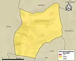 Le retrait-gonflement des sols argileux est susceptible d'engendrer des dommages importants aux bâtiments en cas d’alternance de périodes de sécheresse et de pluie. La totalité de la commune est en aléa moyen ou fort (44,5 % au niveau départemental et 48,5 % au niveau national). Sur les 71 bâtiments dénombrés sur la commune en 2019, 71 sont en aléa moyen ou fort, soit 100 %, à comparer aux 75 % au niveau départemental et 54 % au niveau national. Une cartographie de l'exposition du territoire national au retrait gonflement des sols argileux est disponible sur le site du BRGM[19],[Carte 3].