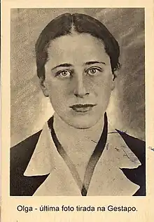 Olga Benário, née le à Munich et assassinée le [1] dans l'établissement de mise à mort de Bernburg, est une militante communiste allemande d'origine juive, femme de l'homme politique brésilien Luís Carlos Prestes.