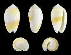 La coquille est lisse et brillante avec une morphologie en forme d'olive.