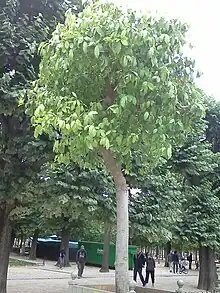 Sa hauteur est d'environ 15 mètres[réf. nécessaire], ses feuilles alternes, elliptiques oblongues, sont longues de 10 à 22 cm, larges de 4 à 7,5 cm[réf. nécessaire], à la base aiguë, à l'apex aigu, aux stipules caduques. Les fleurs sont unisexuées, apétales et forment des baies globuleuses longues de 25 à 45 mm, avec un diamètre de 30 à 60 mm[réf. nécessaire].