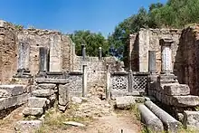La palestre est séparée du gymnase par un propylée de style corinthien datant du IIe siècle av. J.-C.[15].
