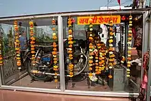 Dans le temple, dédié à Om Singh Rathore, est conservée sa moto, une Royal Enfield Bullet 350 cm3, raison pour laquelle le temple est aussi appelé Bullet Baba[1]