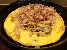 Au Japon et en Chine les œufs battus avec un bouillon se font avec du bouillon de bonite 鲣鱼高汤 (jiān yú gāotāng), le dashi katsuo japonais. Ainsi le 鲣鱼高汤鸡蛋卷 (jiān yú gāotāng jīdàn juǎn), pâté impérial à la bonite et au dashi est un simple mélange d'œufs battu et de bouillon de bonite sans chair de bonite[49]. カツオオムレツ (katsuo omuretsu) omelette à la bonite, 花かつおの卵焼き (hana katsuo no tamagoyaki) omelette aux 鰹節 (Katsuobushi) flocons de bonite séchés. Ce plat est moderne.