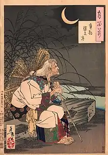 D'autres œuvres emploient le motif de sa vieillesse ; ayant perdu sa beauté, abandonnée par ses anciens amants et regrettant sa vie, errante, en va-nu-pieds solitaire. Cette description imaginaire est influencée par la pensée bouddhiste et ne présente peut-être aucune ressemblance avec son portrait et la réalité historique de sa vie.