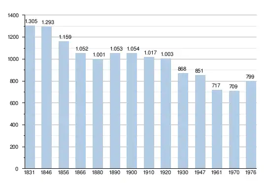 • Sources : INS, Rem. : 1831 jusqu'en 1970 = recensements, 1976 = nombre d'habitants au 31 décembre[2].