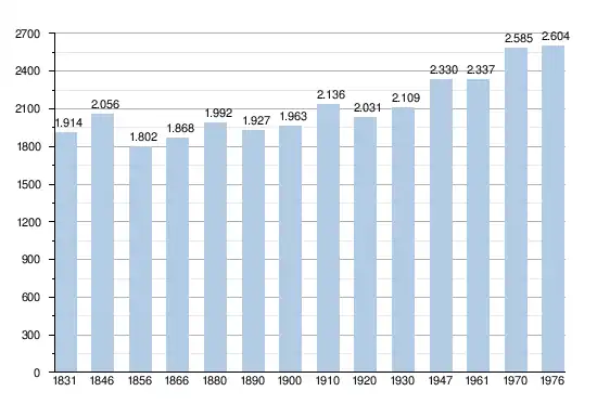 - Sources : INS, Rem. : 1831 jusqu'en 1970 = recensements, 1976 = nombre d'habitants au 31 décembre[2].
