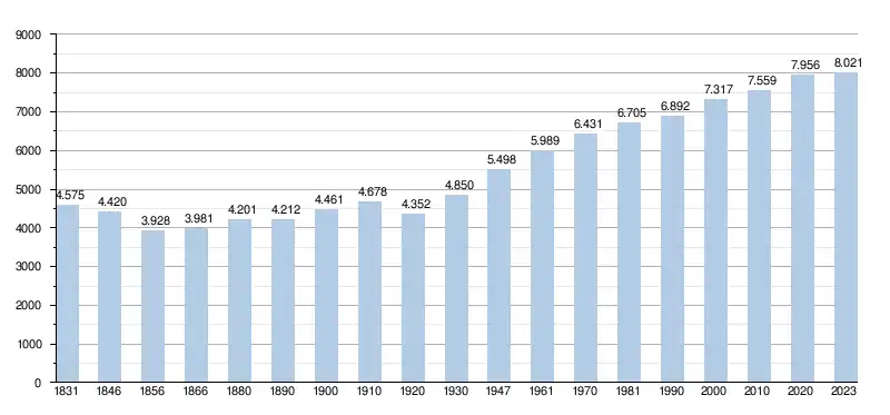 Elle comptait, au , 8 029 habitants (40 025 hommes et 40 004 femmes), soit une densité de 495,62 habitants/km2[3] pour une superficie de 16,2 km2.
