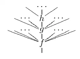 Regardons la structure algébrique que l'on peut mettre sur les ensembles des fonctions à plusieurs variables de (pour tout entier n positif) dans , où est un espace vectoriel réel. On peut multiplier une fonction par un réel, et additionner deux fonctions de . On a ainsi une structure d'espace vectoriel sur chaque , donc une structure de module sur . On peut rajouter une opération de composition, généralisant le classique existant pour les fonctions d'une variable : à et , on peut associer une fonction à n+m-1 variables où on a remplacé par la fonction . On note cette opération , et on l'appelle « produit de composition partiel » (de g à la ième place de f). On peut représenter graphiquement cette opération par une greffe d'arbres :