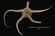 C'est une grande ophiure dont le disque central peut mesurer jusqu'à 4 cm, et chacun de ses 5 bras jusqu'à 9 cm. La couleur est très variable, pouvant être blanche, grise, bleue ou brune.