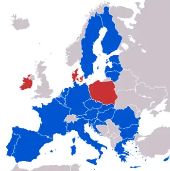 En 2023, trois États ont des options de retrait officielles : l'Irlande, la Pologne et le Danemark. Ce dernier a obtenu quatre options de retrait en raison du rejet du traité de Maastricht par les citoyens danois lors du référendum de 1992. Ces quatre options de retrait sont décrites dans l'accord d'Édimbourg[1] et concernent l'Union économique et monétaire (UEM), la politique de sécurité et de défense commune (PSDC), la coopération policière et judiciaire en matière pénale et la citoyenneté de l'Union européenne. Grâce à ces options de retrait, les Danois ont accepté le traité lors d'un second référendum tenu en 1993.