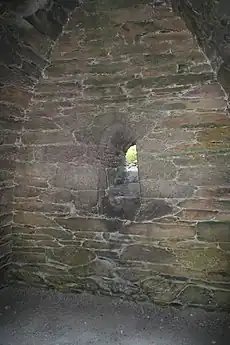 L'unique pièce est éclairée par une petite fenêtre réservée dans le pignon Est et terminée par un arc cintré à trois voussoirs (ou tiercé) à l'embrasure intérieure, et à deux voussoirs à l'embrasure extérieure. Le fenestron a vue sur le port de Ard na Caithne (anciennement Smerwick).