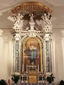 Au plafond, la fresque de l'Assomption est le chef-d'œuvre de la deuxième période d'Udine de Giambattista Tiepolo. L' Assomption est entourée de deux panneaux, l'un supérieur et l'autre inférieur, avec La Gloire des anges. L' Immaculée Conception, une autre œuvre du même artiste, est placée comme retable de l'unique autel.