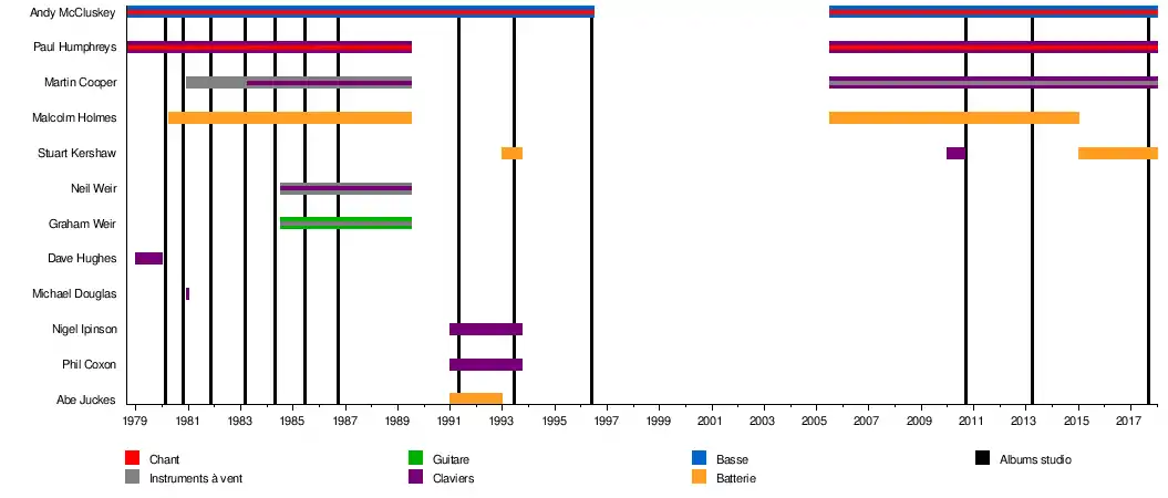 - Paul Humphreys – claviers, chant (1978–1989, depuis 2005)