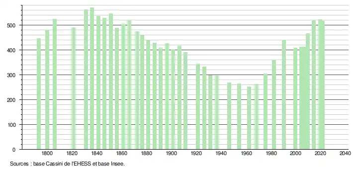 - Fiches Insee - Populations légales de la commune pour les années 2006, 2007, 2008, 2009, 2010, 2011, 2012, 2013, 2014, 2015, 2016, 2017, 2018, 2019, 2020 et 2021.