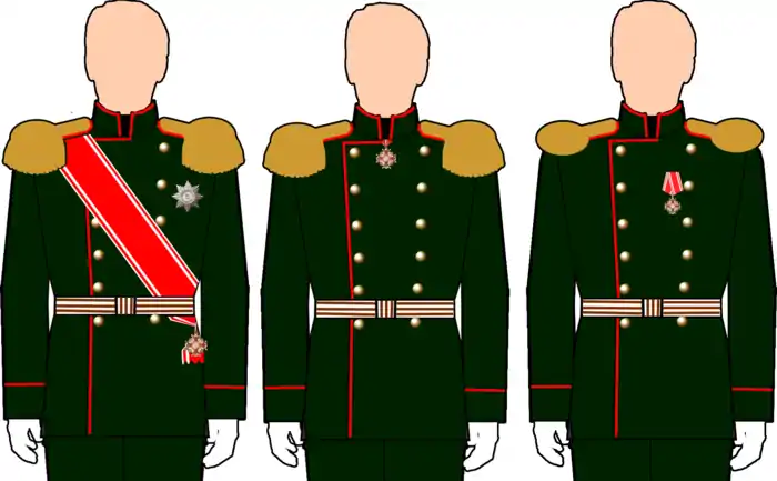 Règles de port des classes de l’Ordre de Saint Stanislas (de gauche à droite de la 1re à la 3e).