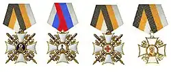 Le ruban aux couleurs héraldiques (blanc-jaune-noir) pouvait être porté par les personnes ayant servi dans l'armée ou la flotte impériale avant l'abdication de Nicolas II, ceux ayant servi après portant l'insigne à un ruban aux couleurs nationales (blanc-bleu-rouge).