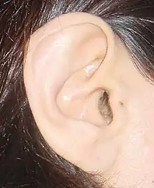 L'Oreille de Mozart ou oreille de Wildermuth, est une malformation congénitale de l'oreille externe qui modifie l'aspect du pavillon. Elle est caractérisée par la fusion de l'hélix et de l'antihélix ; en conséquence de quoi la conque est agrandie, l'antitragus est abaissé et le lobe est hypoplasique.