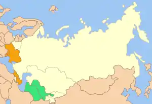 - Arménie, Azerbaïdjan, Biélorussie, Géorgie, Kazakhstan, Kirghizistan, Ouzbékistan, Russie et Tadjikistan