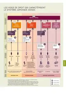 - Tribunal fédéral, « Les voies qui conduisent au Tribunal fédéral: Aperçu de l’organisation judiciaire en Suisse » [PDF], sur bger.ch, (consulté le ).