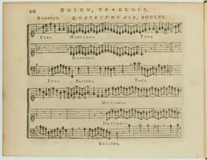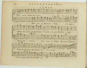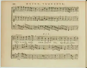 - Joseph de La Font, Simon-Joseph Pellegrin, Orion, tragédie, représentée pour la première fois, par l'Académie royale de Musique, le dix-septième jour du mois de Février 1728, Paris, Jean-Baptiste-Christophe Ballard, (lire en ligne), p. 56