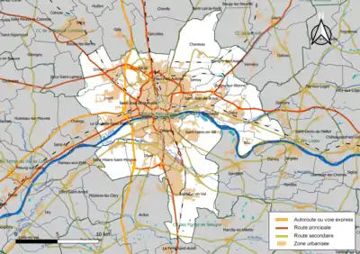 Située dans le centre-ouest du département du Loiret, l'intercommunalité Orléans Métropole regroupe 22 communes et présente une superficie de 334,3 km2[24].