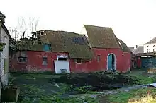 La ferme de « la Rouge » fut d’abord une hostellerie le long de la chaussée de Valenciennes, édifiée par Martin Lhermitte au début du XVIe siècle. La première représentation que nous avons est celle qui figure dans les « Albums de Croÿ ». Les bâtiments actuels remontent au moins au 18e, ainsi que l’atteste l’inscription « 1789 » (ancres sur la façade). Le corps de logis, en T, est flanqué d’appentis, de part et d’autre de l’aile perpendiculaire.