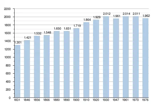 • Sources:INS, Rem:1831 jusqu'en 1970=recensements, 1976= nombre d'habitants au 31 décembre