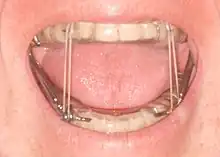 Une orthèse d'avancée mandibulaire est une double gouttière réglable, c’est-à-dire confectionnée au laboratoire de prothèse dentaire d'après des empreintes du maxillaire et de la mandibule; ou une orthèse préfabriquée en thermoplastique, l'ajustement s’effectue alors en mordant dans l’orthèse après l’avoir chauffée dans un bain d’eau chaude. Cette orthèse fixe la mandibule, la langue et d'autres structures buccales en avant et augmente la dimension verticale, de façon que l'espace du pharynx s'agrandisse, la résistance respiratoire diminue et les voies respiratoires soient maintenues ouvertes de façon mécanique lors du sommeil.