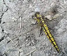 Orthetrum cancellatum - mâle fraîchement émergé ; la couleur verte provient de l'hémolymphe.