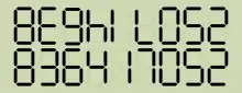 Certains chiffres, sur des afficheurs 7 segments, ressemblent à des lettres de l'alphabet latin lorsque les afficheurs sont lus à l’envers. À chaque nombre peut ainsi correspondre une lettre, créant un sous-ensemble limité, mais fonctionnel, de l'alphabet :