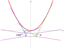 Toute parabole peut être transformée par un mouvement rigide (les angles ne sont pas modifiés) en une parabole d'équation . La pente en un point de cette parabole est . Remplacer donne la représentation paramétrique de la parabole avec la pente tangente comme paramètre : La tangente a pour équation avec le paramètre encore inconnu , qui peut être déterminé en insérant les coordonnées du point de la parabole. On obtient