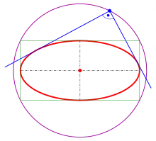 Dans ce cas, les points d'intersection des tangentes orthogonales sont les points du cercle , où a > b.